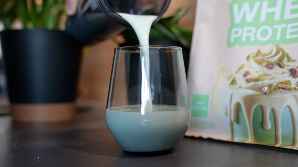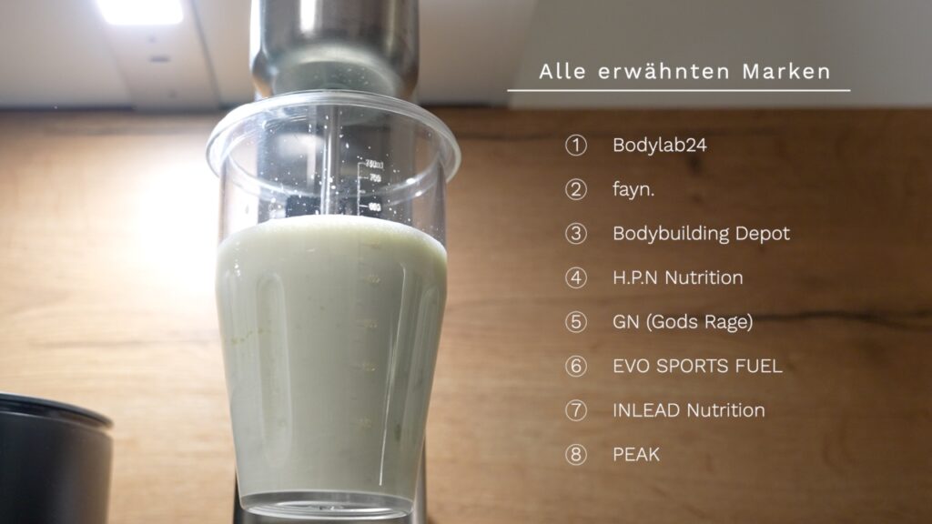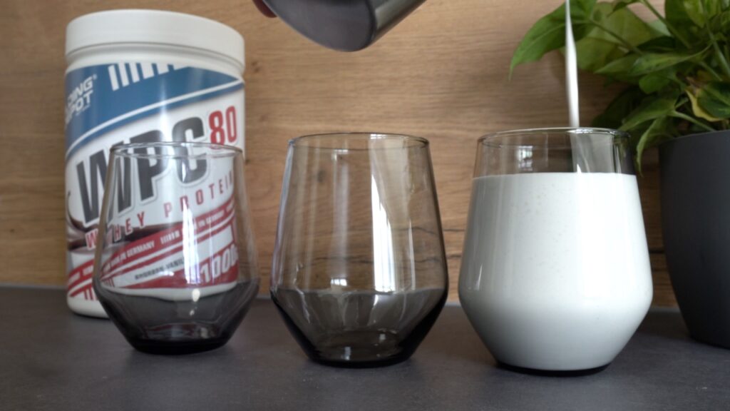 Die größte Überraschung für mich im Feld war dann aber eindeutig das Whey Protein von Inlead. Ich habe ja, wie ihr sehen könnt, alle Proteine zum Vergleich einmal mit immer jeweils 250 ml Wasser auf 30 g zubereitet, um den Geschmack zueinander nochmal richtig einordnen zu können. Und ich wusste ja, dass Inlead in Sachen Intensität und Vollmundigkeit ganz vorne mitspielt, aber dass der Unterschied dann doch so deutlich ausfällt, das hatte ich nicht auf den Schirm.