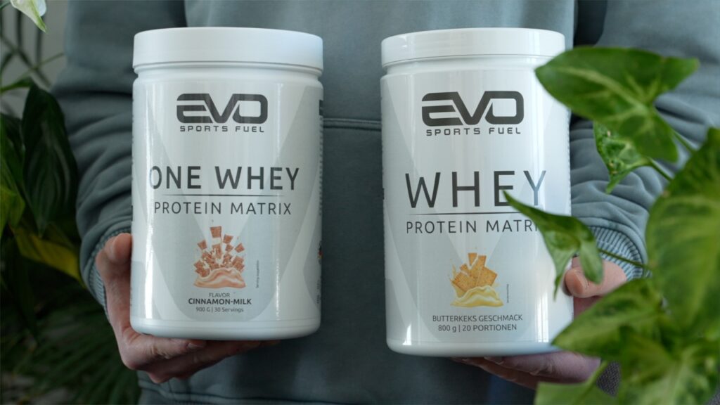 Bei EVO SPORTS FUEL haben wir dann gleich 2 verschiedene Pulver, einmal das EVO Whey Pro und einmal das One Whey, allerdings sind die von der Anmutung dennoch gar nicht mal so unterschiedlich. Hauptunterscheidungsmerkmale zwischen den beiden ist einmal, dass im Whey Pro abseits von Laktase mit Bromelain und Papain zusätzlich noch Verdauungsenzyme für Proteinbausteine enthalten sind, plus ist hier auch der Eiweißgehalt etwas höher. Ob Pro Version für einen den Aufpreis wert ist, könnt ihr also echt zu 100% von diesen beiden Faktoren abhängig machen.