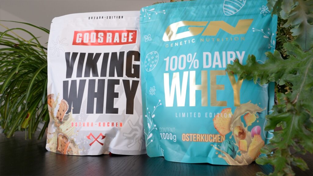 Und um das nochmal explizit zu sagen: Ob ihr jetzt euer Whey von GN oder Gods Rage bezieht, macht in der Praxis keinen Unterschied. In diesen beiden Beuteln hier steckt wirklich exakt dasselbe Pulver drin und auch beim Geschmack gibt es keine Unterschiede.