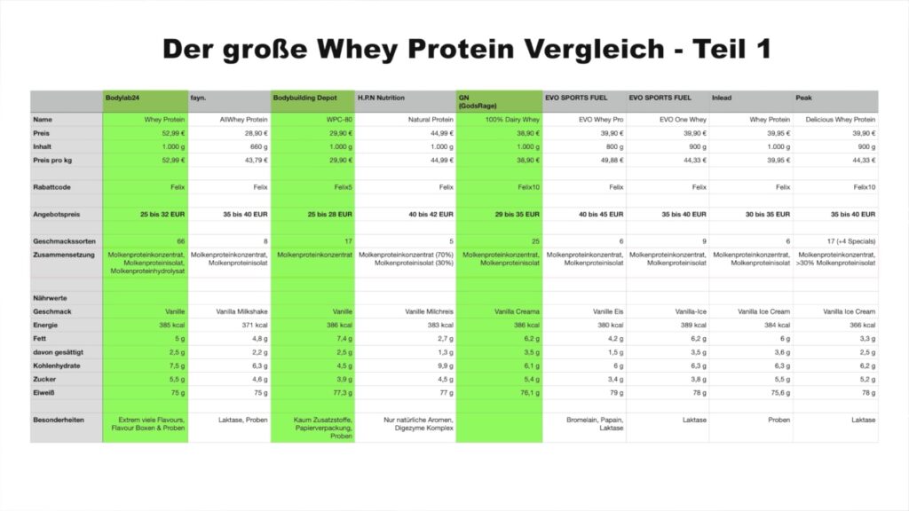 Sprich, was ich sagen will ist, was dem einen gefällt, muss dem anderen nicht zwangsläufig auch gefallen. Und genauso ist es auch beim Whey Protein und damit ich zu jedem Produkt auch ein bisschen was erzählen kann, kann ich nicht direkt alle Pulver in ein einziges Video packen.