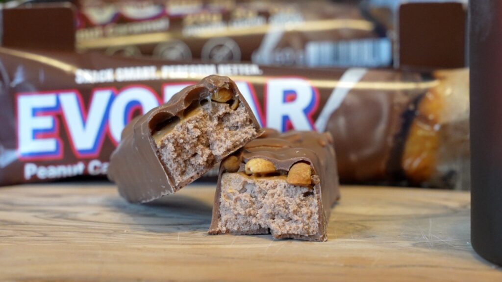Dann schon lieber den neuen EVOBAR im Geschmack Peanut Caramel von EVO SPORTS FUEL. Dieser Riegel kommt mit lediglich 200 kcal, was sogar 13 kcal weniger ist als der Betty’s Protein Bar eben, auf 5 g mehr Eiweiß plus ist dieses dabei auch noch komplett kollagenfrei. Außerdem bietet EVO in ihren Riegeln ja auch immer noch diesen Zusatz von 3 g Leucin, um in Verbund mit dem Eiweiß auch gleich die Muskelproteinsynthese anzukurbeln.