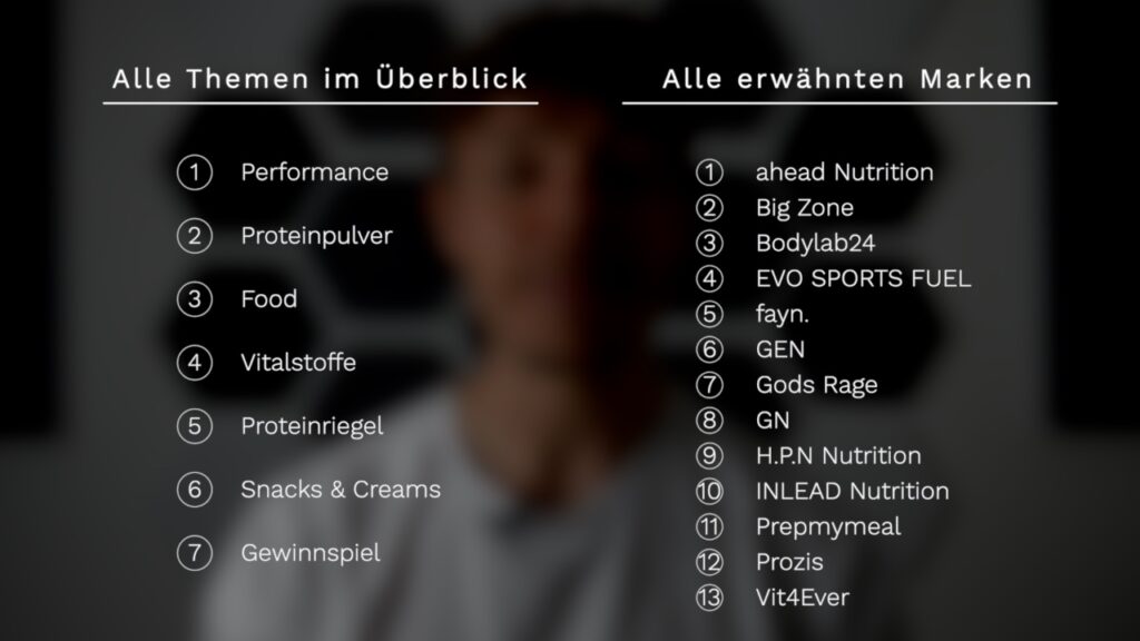 Und wer seine Top 3 Produkte dieser Folge in die Kommentare schreibt und diesen Kanal abonniert, hat jetzt noch die Chance eines meiner bis zum Rand gefüllten Supplement Pakete zu gewinnen. Den Gewinner oder die Gewinnerin ermittle ich dann nach der FIBO, wo ich übrigens auch sein werde.