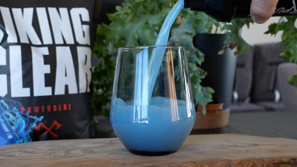 Besser gelang das schon beim zweiten ebenfalls sehr prominent angelehnten Geschmack namens Powerblue. Der kommt aus meiner Sicht nämlich wesentlich näher ans Original ran, was in Anbetracht der Tatsache, dass wir hier ja immer noch ein Proteinpulver mit in dem Falle 82,5 g Eiweiß auf 100 trinken, schon eine Leistung ist.