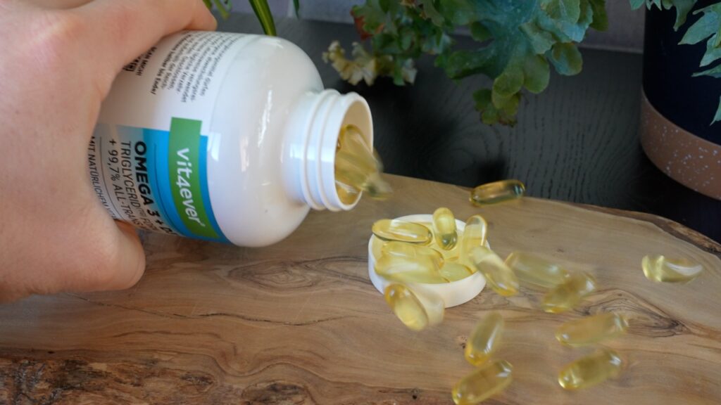 Im Zentrum steht aber natürlich eher das Fischöl, was in dieser Kombi auch absolut Sinn ergibt, da es sich bei Vitamin D3 und K2 um fettlösliche Vitamine handelt. Das Fischöl ist dabei mit einem Omega 3 Anteil von 60% nicht ganz so hochwertig wie zuletzt die Kapseln von HPN, aber auch weit entfernt von minderwertig und für einen Preis von 31,99 EUR für die 240 Kapsel-Dose auch absolut fair bepreist.