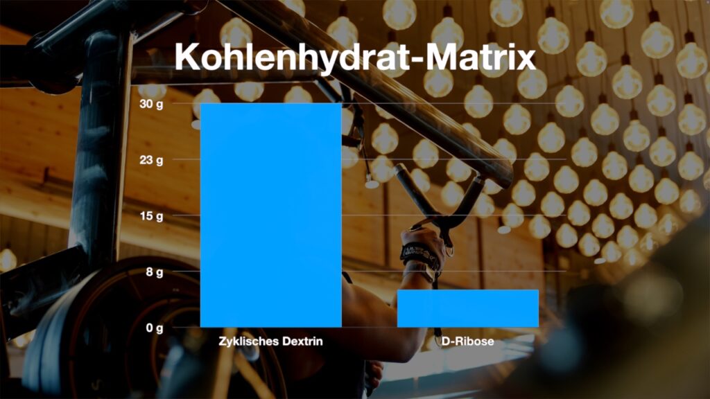 Die Kohlenhydratmatrix aus 30 g zyklischem Dextrin und weiteren 5 g D-Ribose, einer sehr schnell verfügbaren Energiequelle mit direktem Einfluss auf die ATP Produktion, ist dabei eher am oberen Limit in Sachen Dosierung angesetzt, weshalb ich das Anwendungsgebiet dieses Produkts auch eher im Kraftausdauerbereich wie Hyrox sehe und weniger im reinen Kraftsport, wo der Energieverbrauch deutlich geringer ausfällt als man annehmen würde.