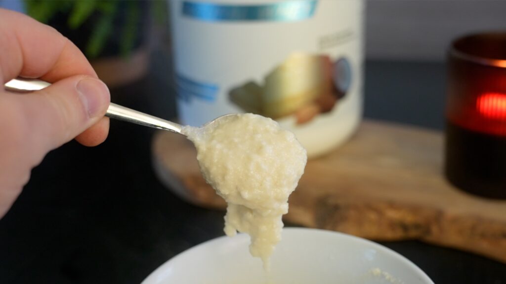 Geschmacklich lässt sich das One Whey dabei am besten als eher dünn und wässrig beschreiben, ohne dass es ihm dabei aber an Intensität fehlen würde. Eine tiefergehende Einordnung dazu folgt später nochmal im Video, wenn wir zu anderen Proteinen kommen.