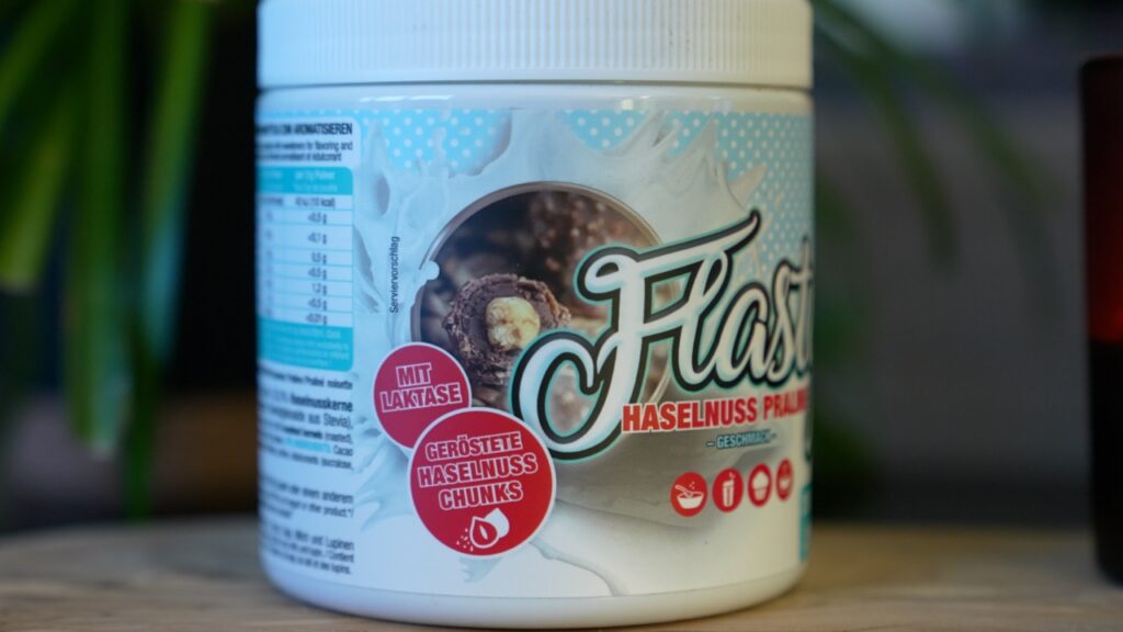 Was ich aber dagegen wieder testen konnte, war das neue Flasty Haselnuss Praline von Sinob, das Ben schon in meinem letzten Supp Entwickler Talk Podcast angesprochen hatte. Generell ist das Flasty auf Inulin Basis, also auch echt kräftig und süß dadurch und daher ist es auch selbst bei diesem Kakaolastigen Flavour kein Problem diesen auch im Joghurt oder Quark einzusetzen. Haselnuss Praline ist dabei natürlich der Abbildung entsprechend an Ferrero Rocher angelehnt und den Geschmack hat man auch instant vor Augen, wenn man das Pulver probiert. Also Authentizität ist wirklich eine 10 von 10.