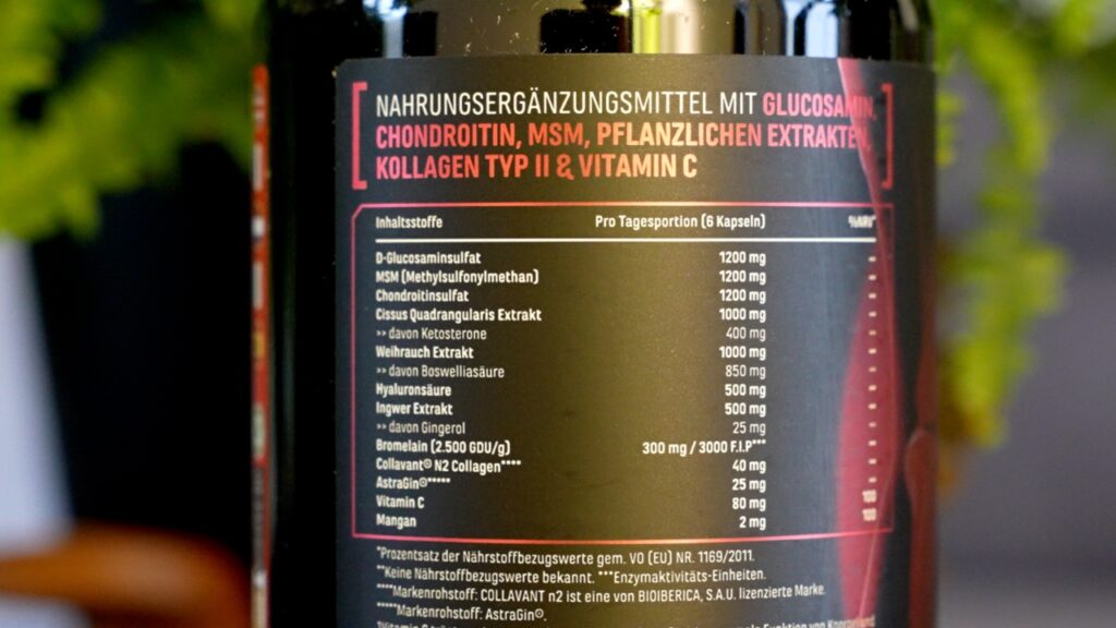 Die Zusammensetzung ist dabei erneut echt hochwertig mit unter anderem nativem Kollagen Typ 2 der Marke Collavant, MSM, Hyaluronsäure oder auch Weihrauchextrakt. Man muss zwar davon für die volle Wirkung 6 fette Kapseln am Tag schlucken, bekommt aber dafür auch ein richtig gutes All in One Produkt geliefert!