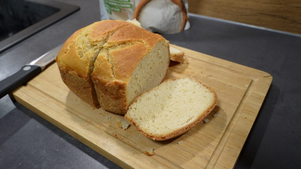 Das Yummy Kitchen Protein dagegen arbeitet direkt mit einer hitzestabileren Proteinbasis, um damit problemlos beim Backen eingesetzt werden zu können. Die Faustregel lautet, etwa ein Viertel des Mehls mit dem Proteinpulver zu ersetzen, was ich hier bei meinem Brot auch genauso umgesetzt habe und keinen großartigen Kompromiss im Vergleich zu ohne feststellen konnte. Man merkt es also nur beim Eiweißgehalt. Mit 81,73% ist der hier auch aufgrund der Tatsache, dass kein Sahnepulver zum Einsatz kommt, nochmal ca. 10% höher als eben noch beim Yummy Sahne Protein und die sind dann natürlich auch Teil des Proteinbrots am Ende.