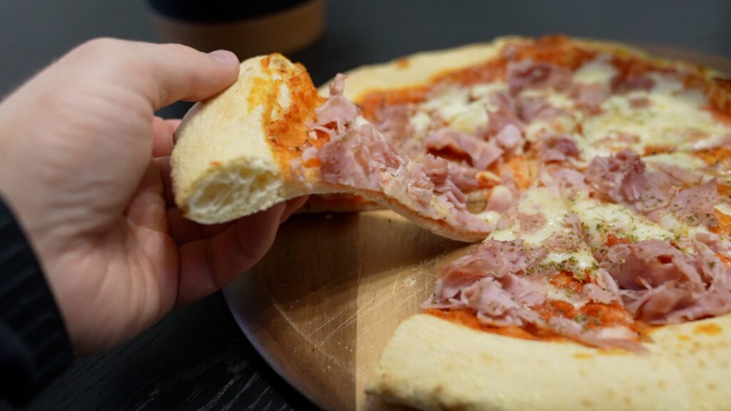 Die beste High Protein Pizza ist für mich ganz klar die Chicken Variante. Die ist sogar meine Nummer 1 von allen Freda Pizzen plus hat sie auch nochmal etwas mehr Eiweiß. Und in Sachen Preis-Leistung muss man nach der Preissenkung auch echt nochmal die Prosciutto Passion Variante mit Schinken in den Ring werfen. Die ist zwar auf dem Papier keine High Protein, liegt aber mit wiederum 57 g Eiweiß echt nicht sonderlich weit hinter der Salami.