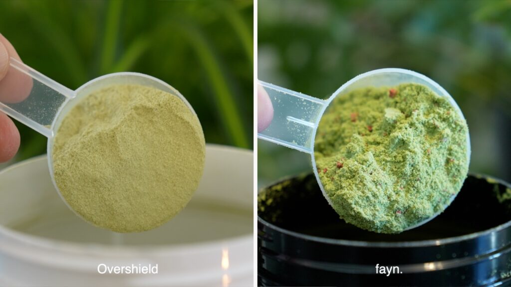 Insgesamt würde ich sagen, dass man bei fayn. mehr den Matcha an sich zelebriert und es wirkt auf mich auch insgesamt gesehen nach dem hochwertigeren Geschmacksprodukt. Overshield hingegen ist deswegen nicht schlecht, ganz und gar nicht, bleibt sich aber seinem Ursprung als Proteinpulver einfach treuer im Vergleich.